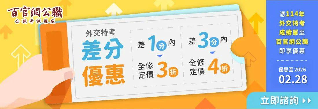 【外交特考差分優惠】2026年外特課程最高3折~憑成績單享外特全修課程最大折扣