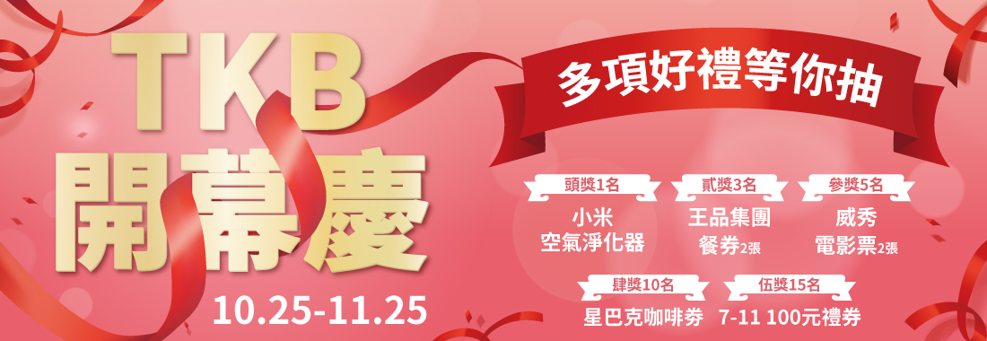 【TKB台南館開幕慶】多項好禮等你抽,滿3仟就送好禮五選一
